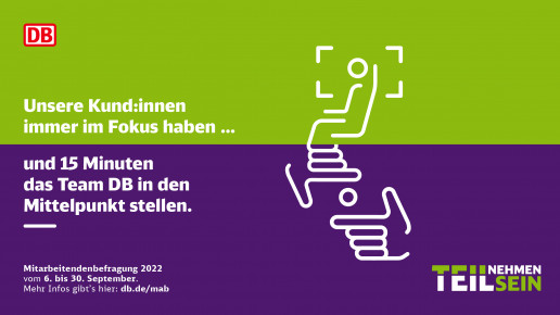 Alle zwei Jahre befragt die Deutsche Bahn weltweit ihre über 336.000 Mitarbeitende. Ein ungeheueres Projekt, das von den Macher:innen viel Sensibilität (z.B. im Umgang mit Daten) verlangt. Wir durften bereits zum zweiten Mal kommunikativ unterstützen und haben einiges dazu auf die Beine gestellt: einen sehr emotionalen Film (mit FischerAppelt im Lead), einen begeisternden Erklärfilm, der alle Schritte der MAB detailgetreu erklärt, eine Roadshow durch die Werke, viele, viele Geschichten, Interviews und bewegte Statements. Kurz: Kommunikation, die richtig viel Spaß gemacht und die Menschen bei der DB erreicht hat.